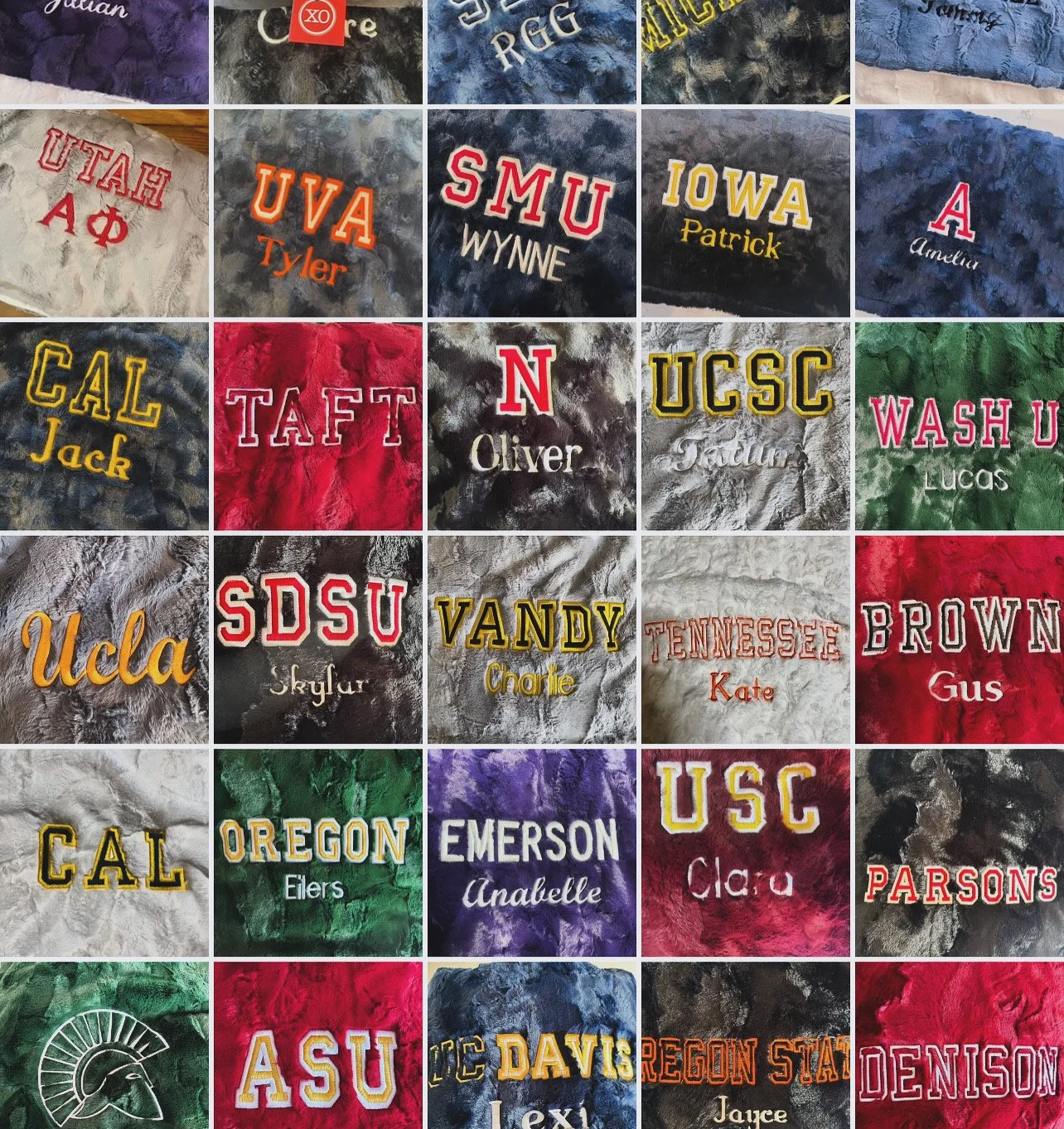 Every college represented and inspired by their favorite ‘Student Store’. The XO College blanket is an all time grad gift favorite. Custom & personalized, this blanket provides the comforts of home. Only better.